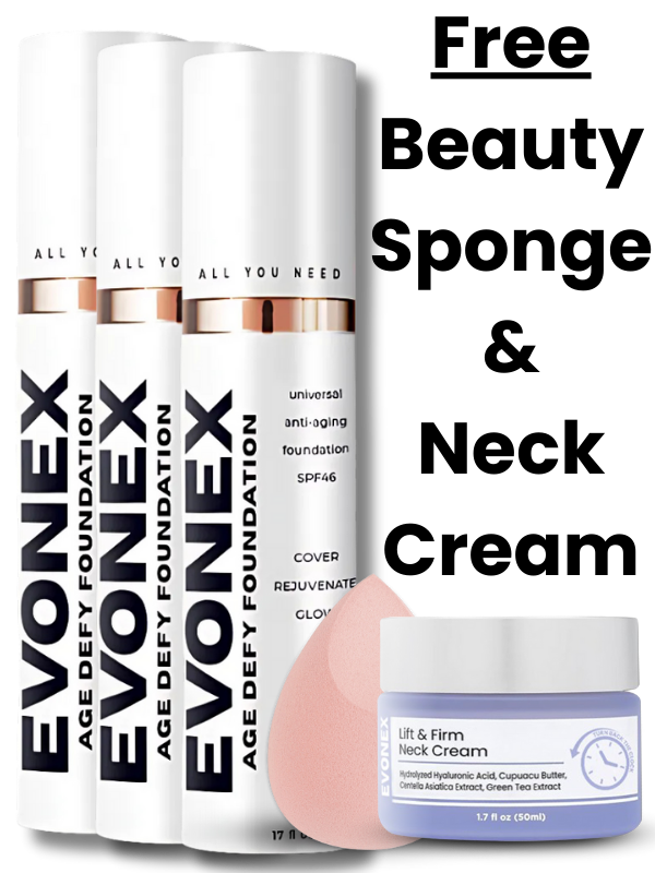 Evonex Age Defy Foundation with Revitalizing Cleansing Oil and Lift & Firm Neck Cream for a complete rejuvenation routine that lasts. Cover, hydrate, lift, and protect. Start becoming the best version of yourself now!